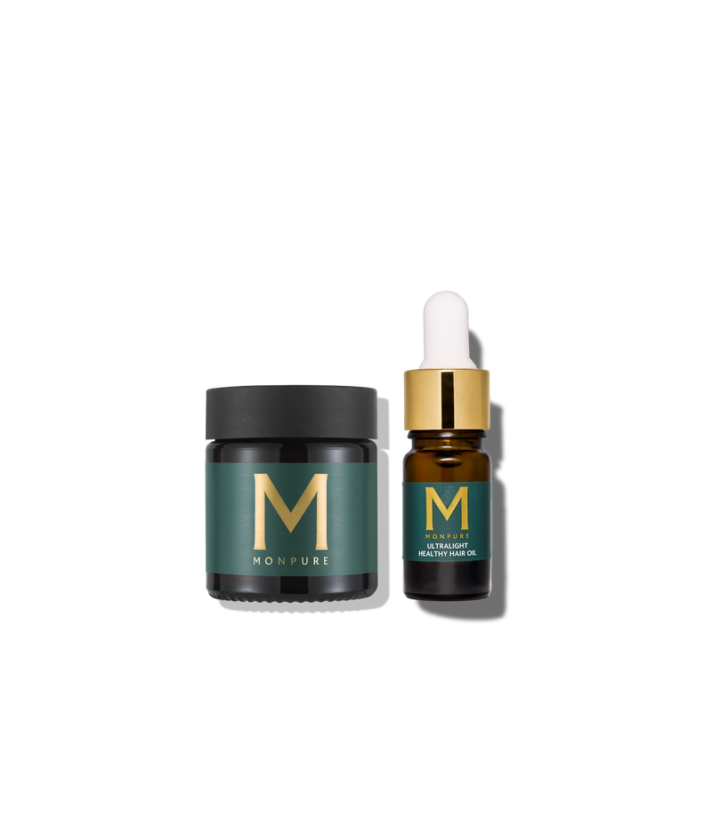 Keep scalp and hair healthy on-the-go with the Prepare & Finish Travel Set. This travel-friendly duo, including Clarifying Scalp Scrub 30g and Ultralight Healthy Hair Oil 5ml, detoxifies the scalp, removes build-up and flakes, hydrates strands, smooths frizz and enhances shine. Ideal for travel or quick touch-ups, it also pairs perfectly with MONPURE Shampoo and Conditioner systems to boost overall results.